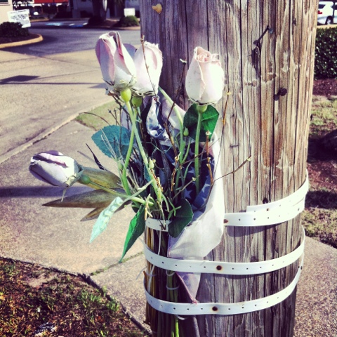 The next day I did not find any bikes, but did find memorial flowers and a cross at two of the locations.